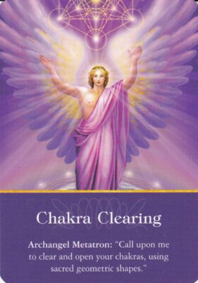 Metatron folosește forme din geometria sacră pentru a curăța și alinia chakrele (centrele energetice) din corpurile noastre. Roagă-l mental pe Metatron să îți deschidă chakrele și el va trimite cu blândețe ”cubul lui Metatron” (forma desenată în ilustrația acestei cărți) prin chakra coroană din vârful capului. Cubul se rotește în jos curățând toxinele psihice din …